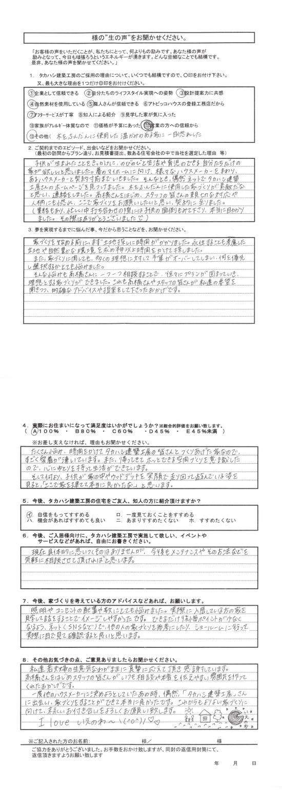に出会い、家づくりをすることができて本当に良かったです。これからもよりよい家づくりに
