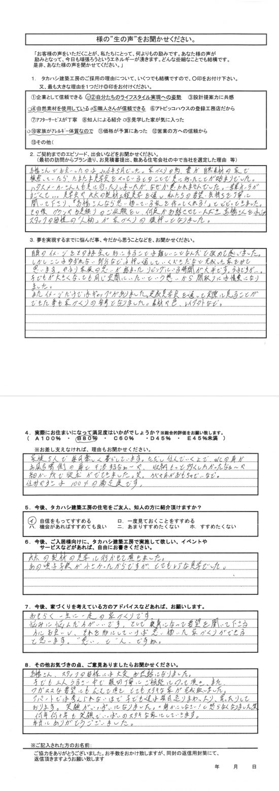 高橋さんとお会いしたのは2016年5月でした。家づくりの為、妻が自然素材の家で
