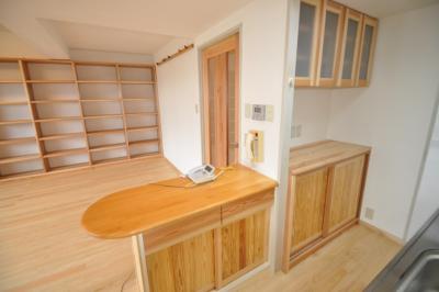 既存のキッチンカウンターを利用して木の雰囲気に改修