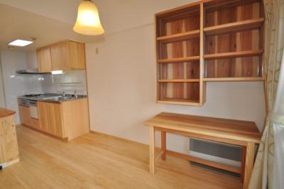 書斎机、本棚も造作