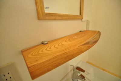 ケヤキの洗面カウンター棚