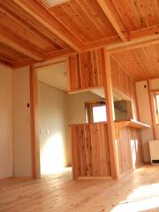 ・1階は宮城県産の杉の梁材を表し、杉板天井材を使用。