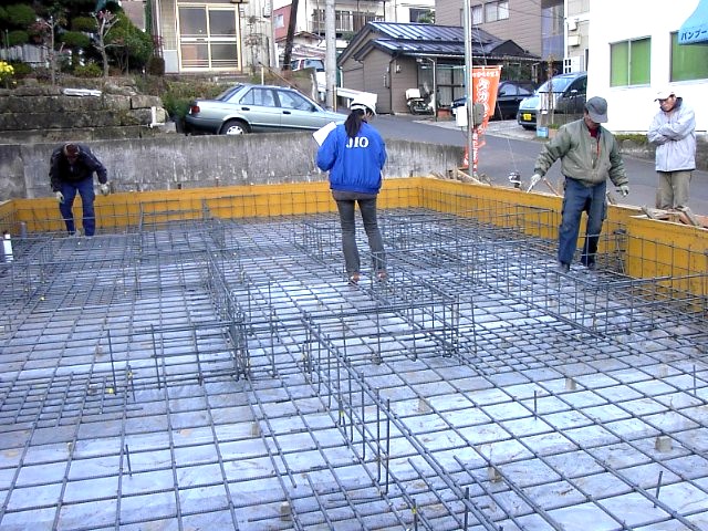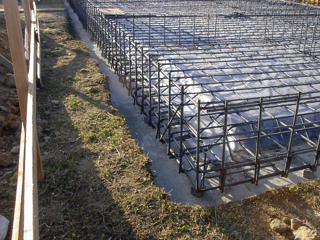 鉄筋は13ミリを20センチおきに配置し、平らな部分のコンクリートの厚さは15