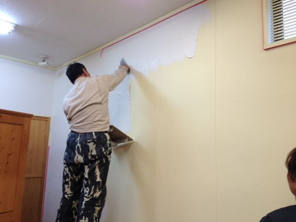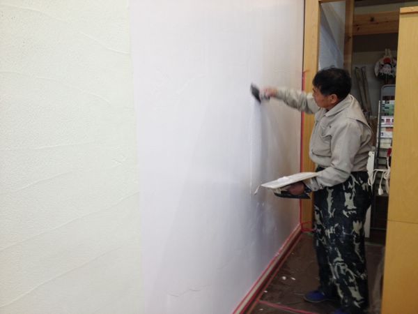 ホーム > スタッフブログ > タカハシ建築工房の木の家具のお店、珪藻土塗り壁施工中です。