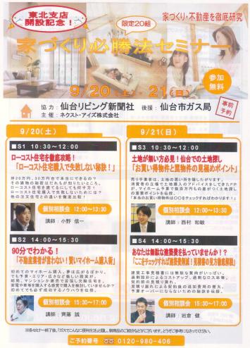 ホーム > スタッフブログ > ネクストアイズ東北支店開設記念「家づくり必勝法セミナー」のお知らせ