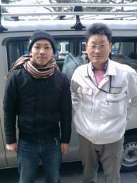 今日は名取市の現場に行く途中、ヒッチハイクの学生に遭遇。
