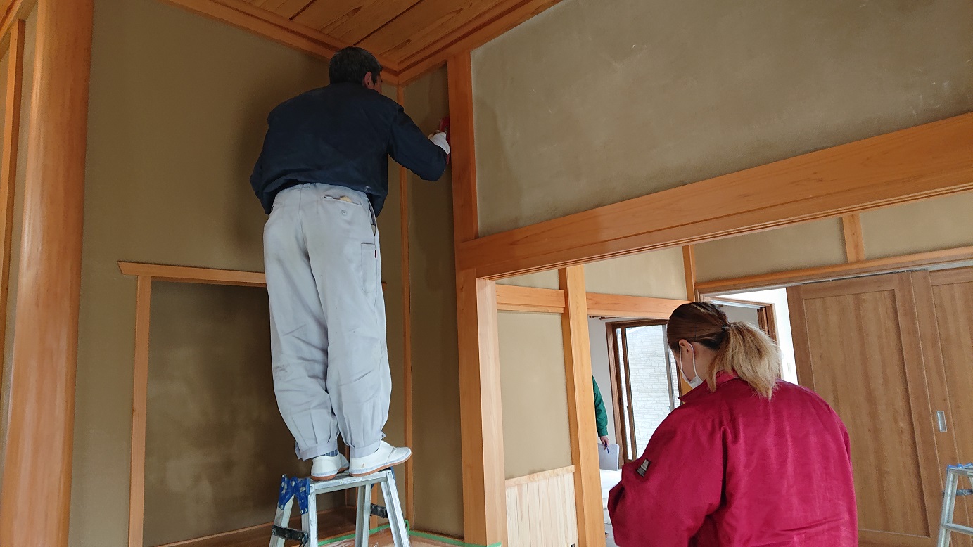 先日、下地処理も終わり今回塗替えの壁は国産ヒノキ配合のジュラク壁になります(´艸`*)
