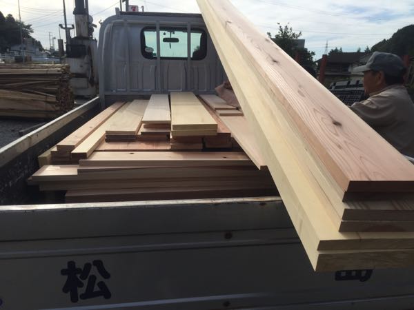 当社にて製材の杉の建具枠、米ヒバの建具枠をトラックに積み込み配達します!