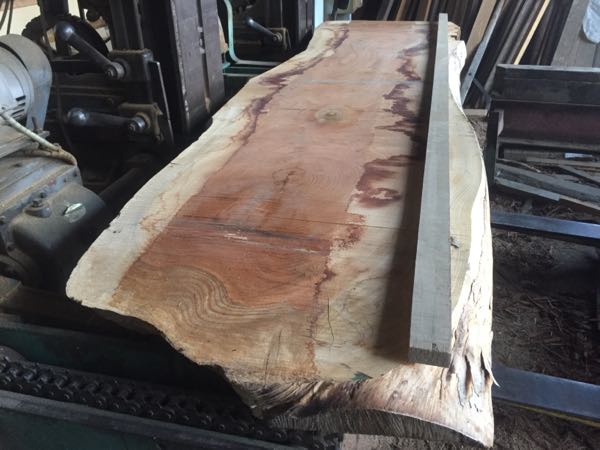 最後は、二階のリビングに使用するケヤキの一枚板カウンターをこれから製材します。