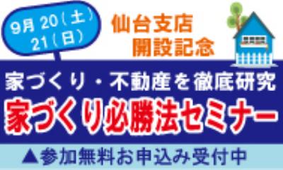 東北支店開設記念:「家づくり必勝法セミナー」開催のご案内です!