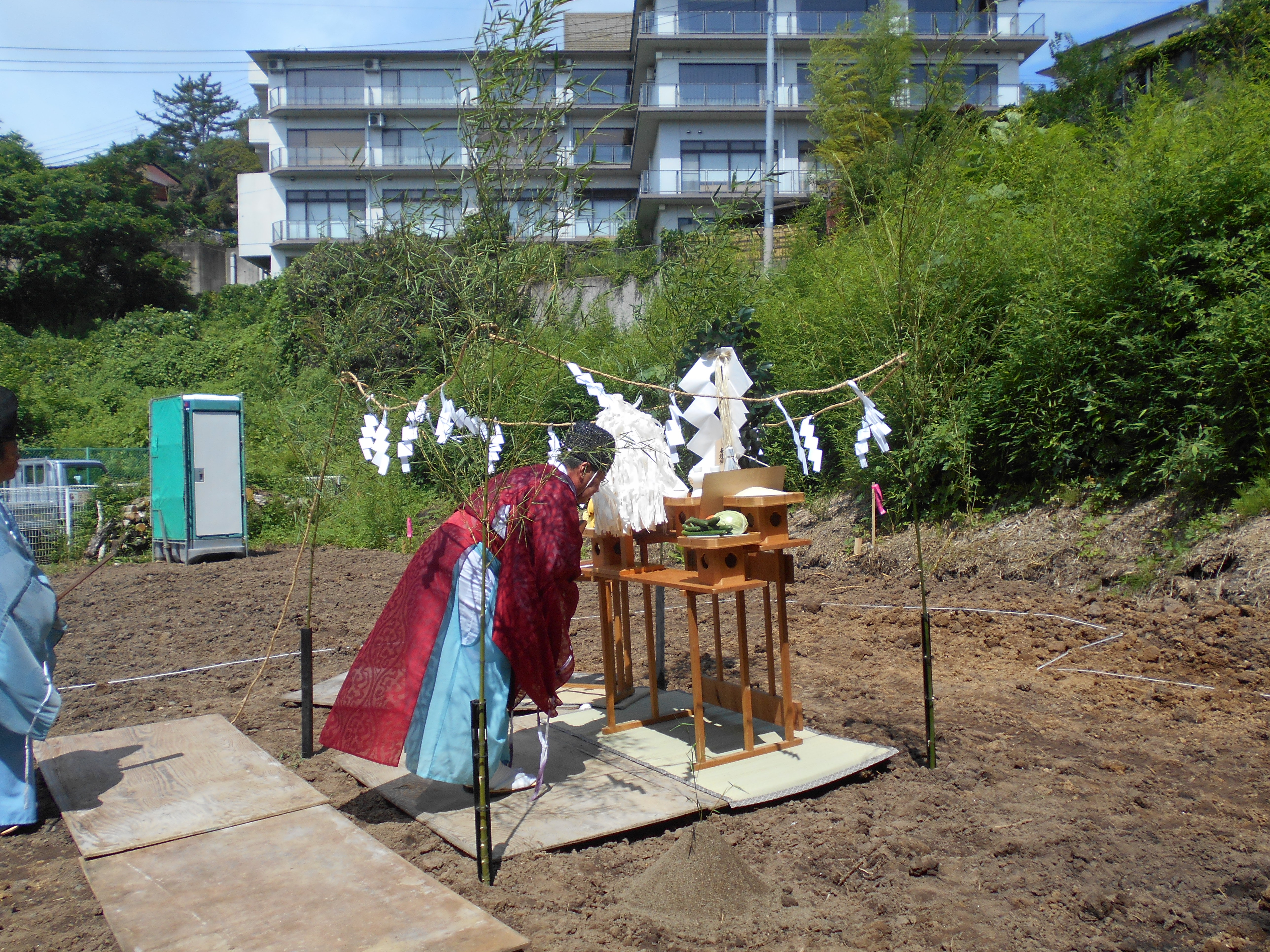 土曜日(20日)に地鎮祭を行いました。心配していた天気も無事に晴れ、
