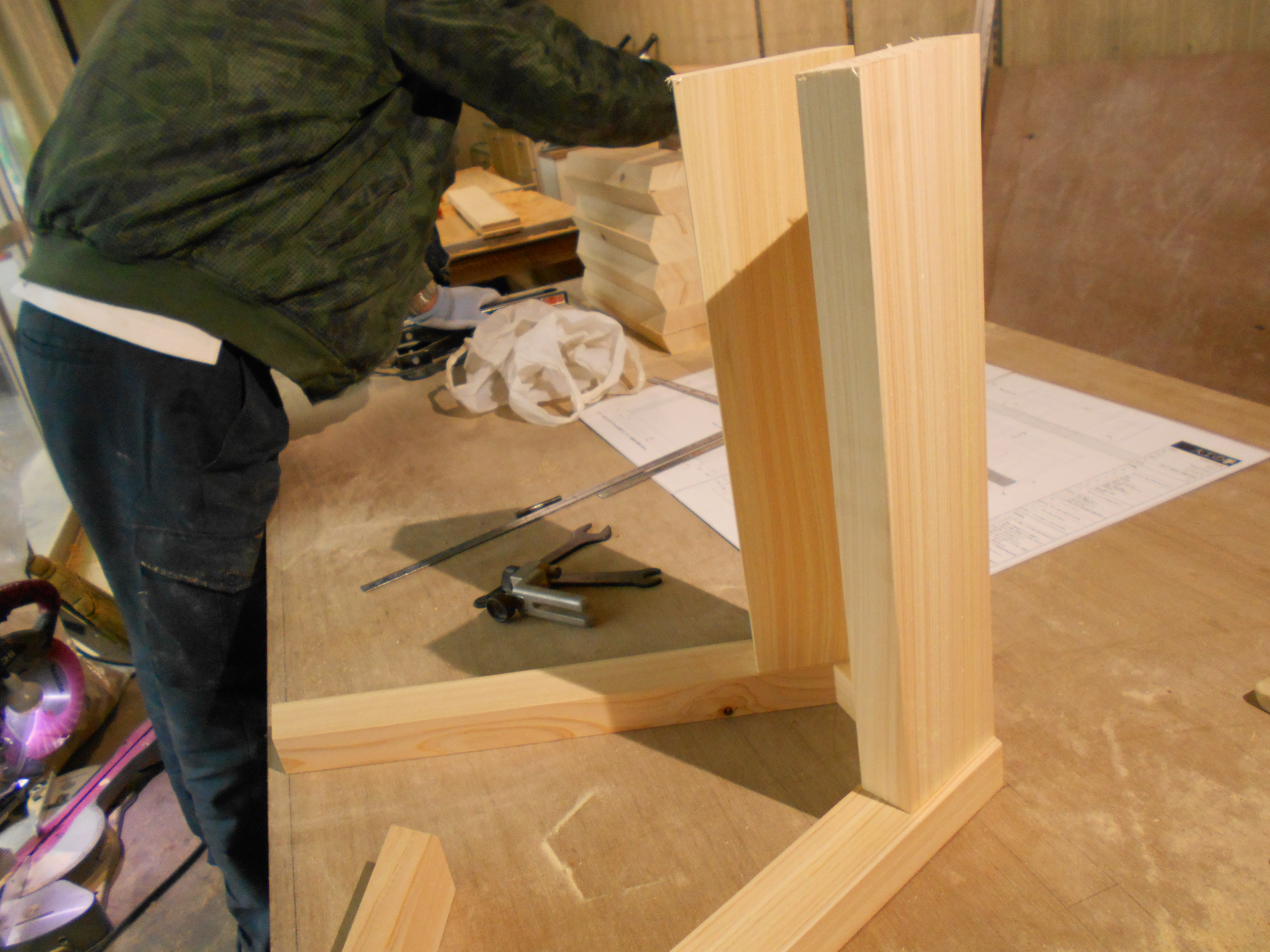 只今、家具を大工さんが製作中です(´艸`*) 今回は、テーブルとスツールになります。