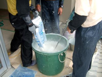 今回はマンションの壁全面塗りなので、全部で40袋も必要です。