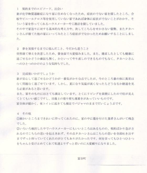 富谷町シックハウス対策注文住宅T様の家作りご感想