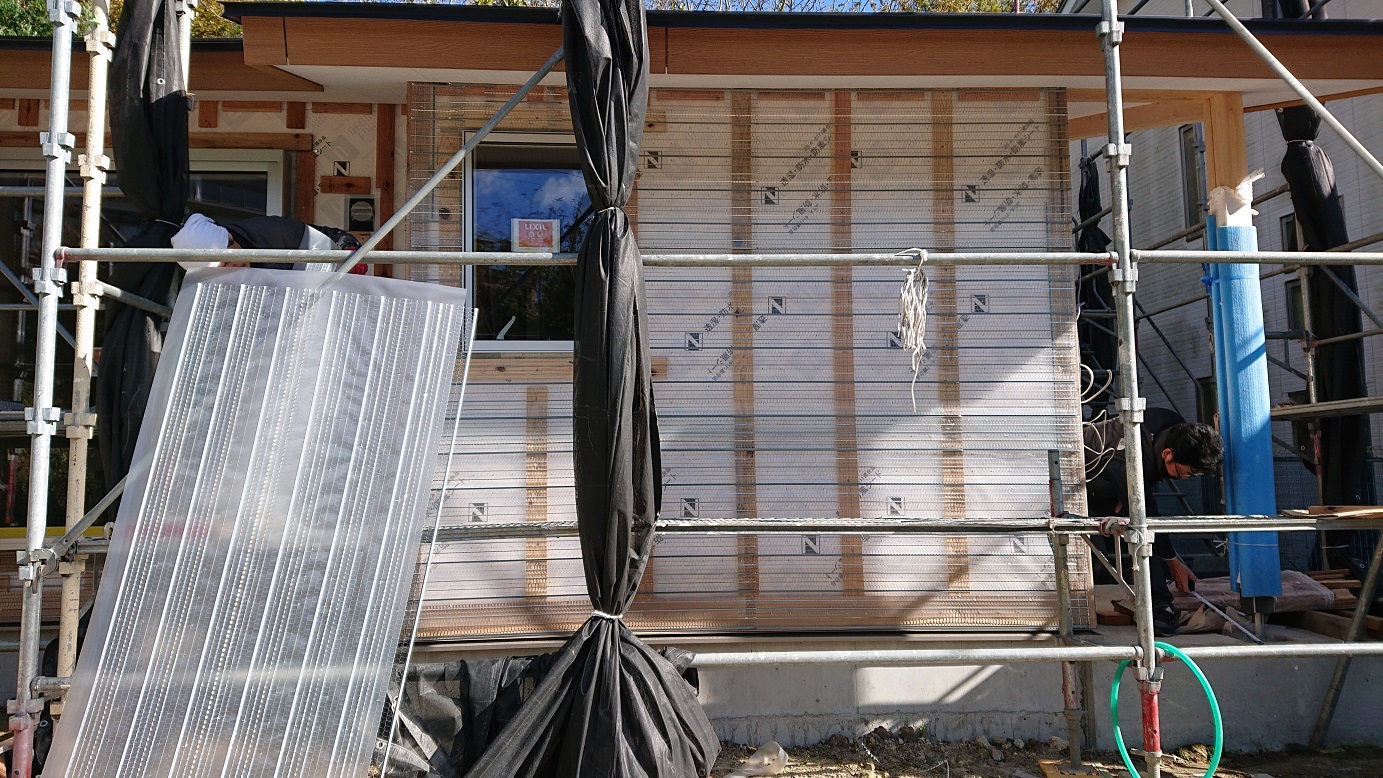 本日は、モルタル下地、ラス網張りです!