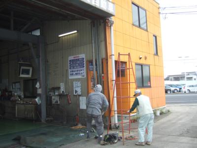 小さな修理工事でも、シャッター屋さん、樋工事屋さん、塗装屋さんと3人の職人さんが