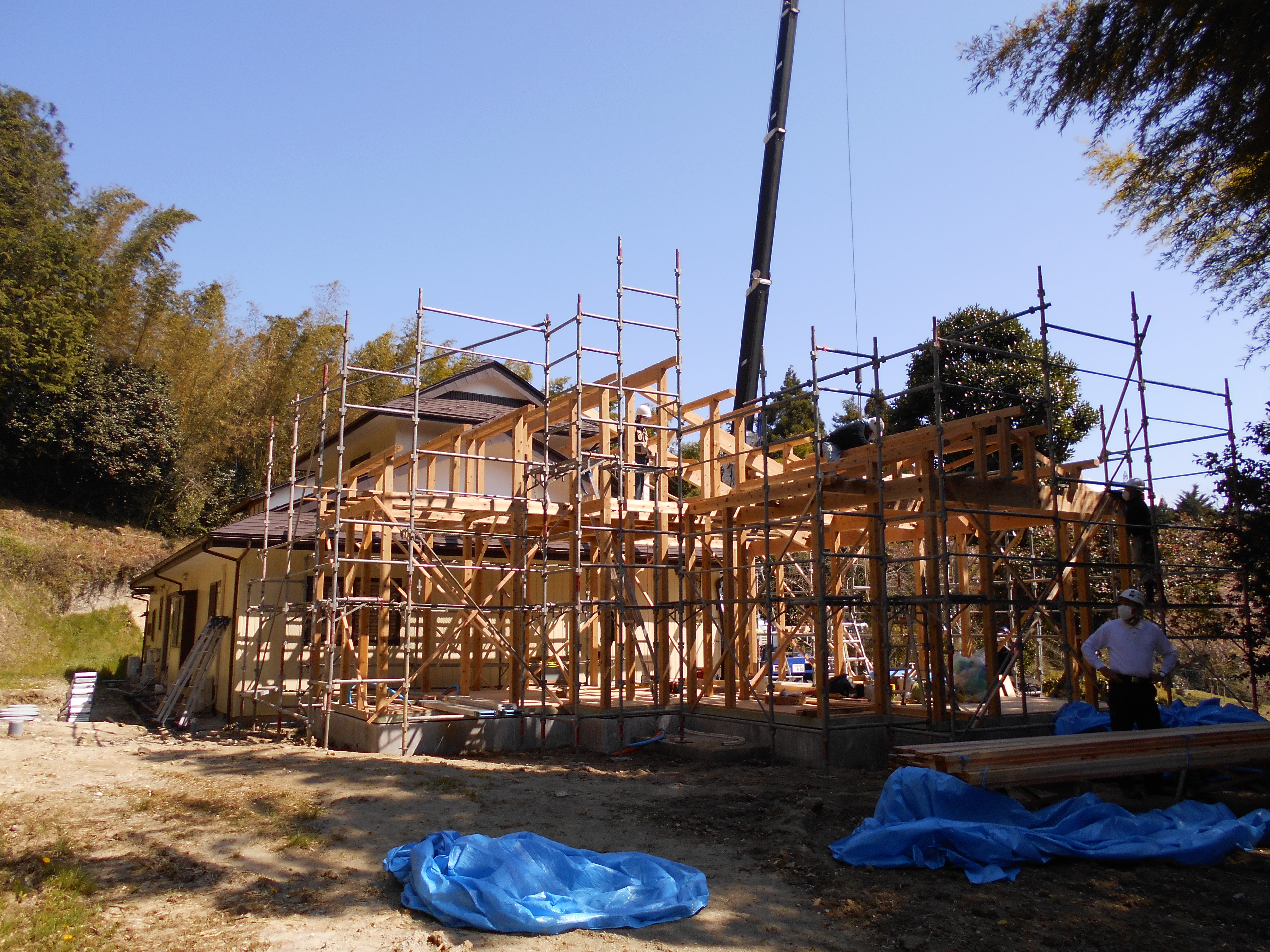 一日中天気にも恵まれよい建方の日になりました(^_-)