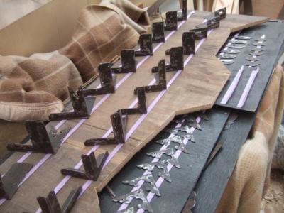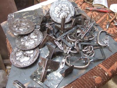 取り外した金具は、サビを取り、仕上げの塗装がのり易くなるように、一個一個丹念に磨きます。(根気のいる作業です)