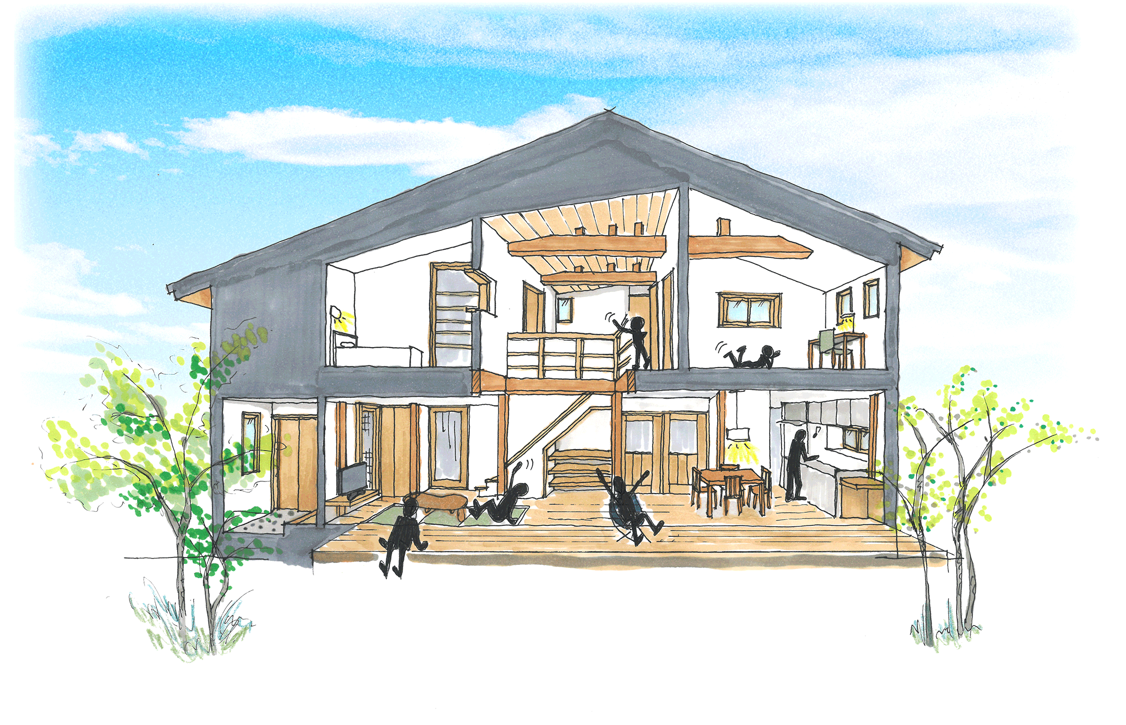 「吹き抜けに集う、みんなの居場所のあるいえ」