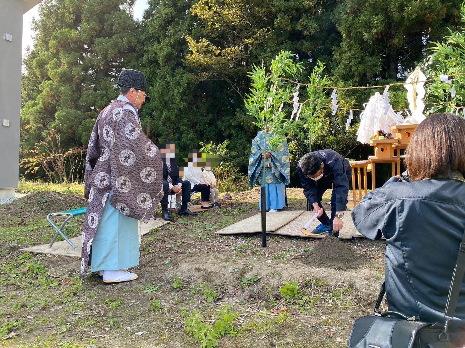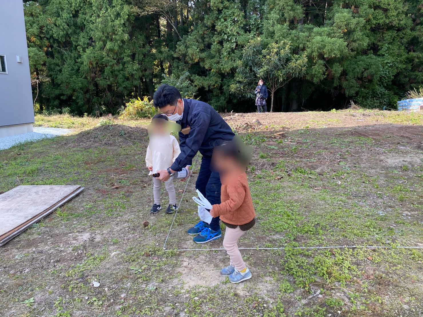 お施主様のお子様たちが「どうしてお酒をまいてるの?」と
