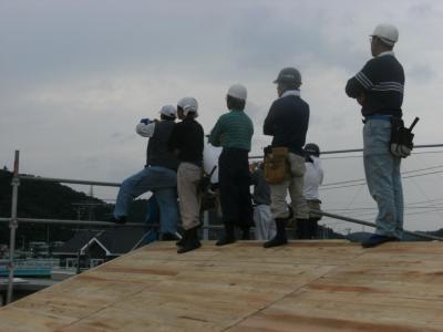 上棟式後、職人さんみんなを集めて、私が一人一人お客様にご紹介しながら、