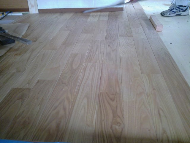 仙台市宮城野区のリフォーム現場では、栗の木のフローリングを施工中です。