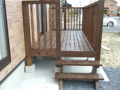 今回のウッドバルコニーは、この後お施主さんに自然塗装を綺麗に仕上げてもらう予定です。![]()