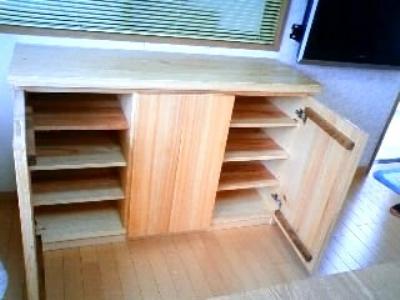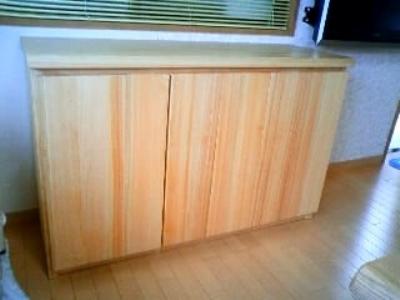 赤松のテレビボードも作りました。テレビの廻りには、お気に入りの雑誌などを置くそうです。