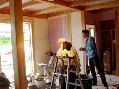 左官屋さんも、始めは練り方からの指導の為、ちょっと戸惑い気味ではありましたが、
