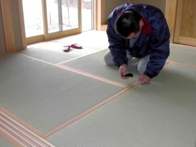 最近の畳は、表の材料が植物のイグサではなくて、ナイロンとか紙に特殊な処理をした