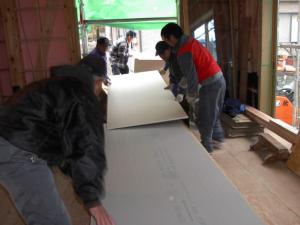 今回は場所が狭いので、朝の9時から現場にいる職人達みんなで、1階と2階に振り分けまし