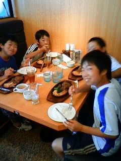 今日は朝5時半起きして、交流大会に望みましたが、一回戦で負けてしまい、にかほ市、酒田、最上と観光しながらの帰宅中です。それにしても、子供達は、食欲旺盛です。