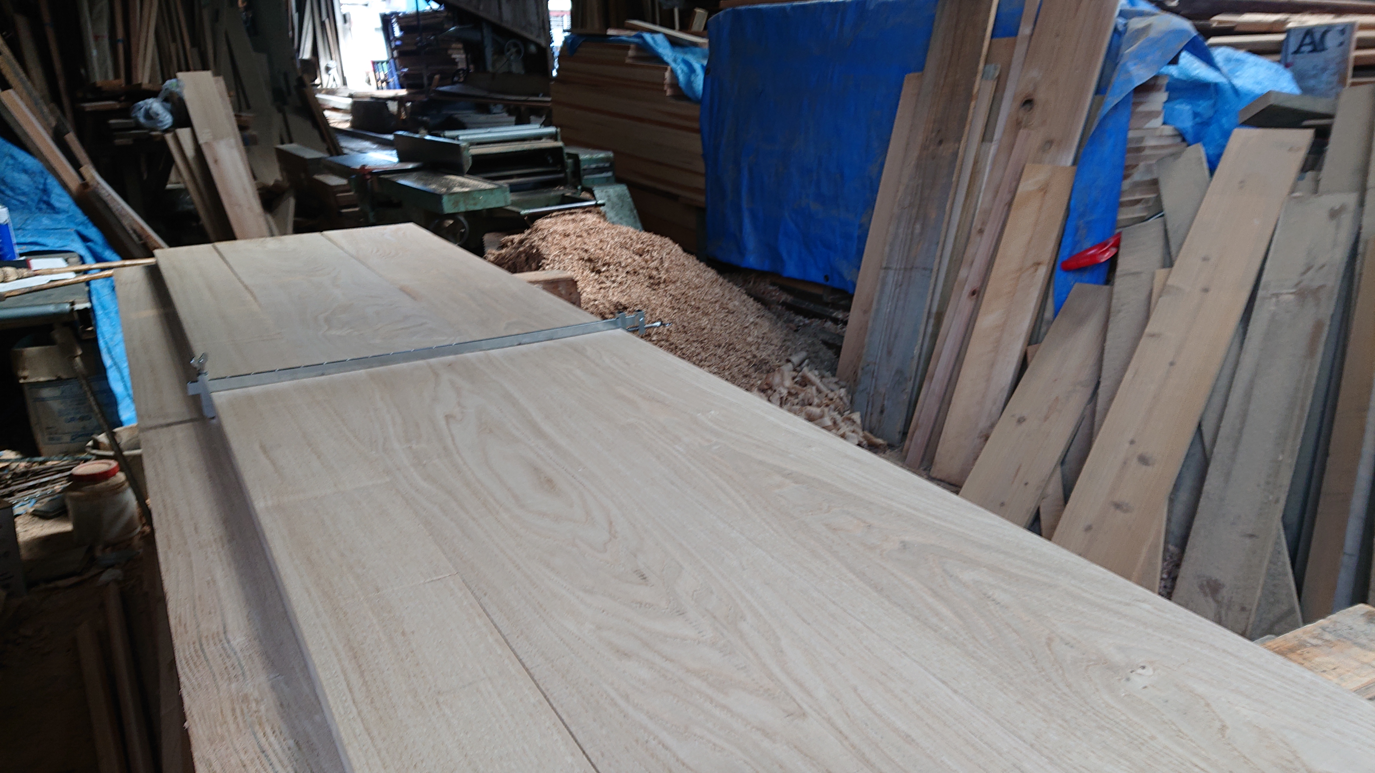 こちらはTV台の天板になります。幅が広いので3枚の板をはぎ合わせます。