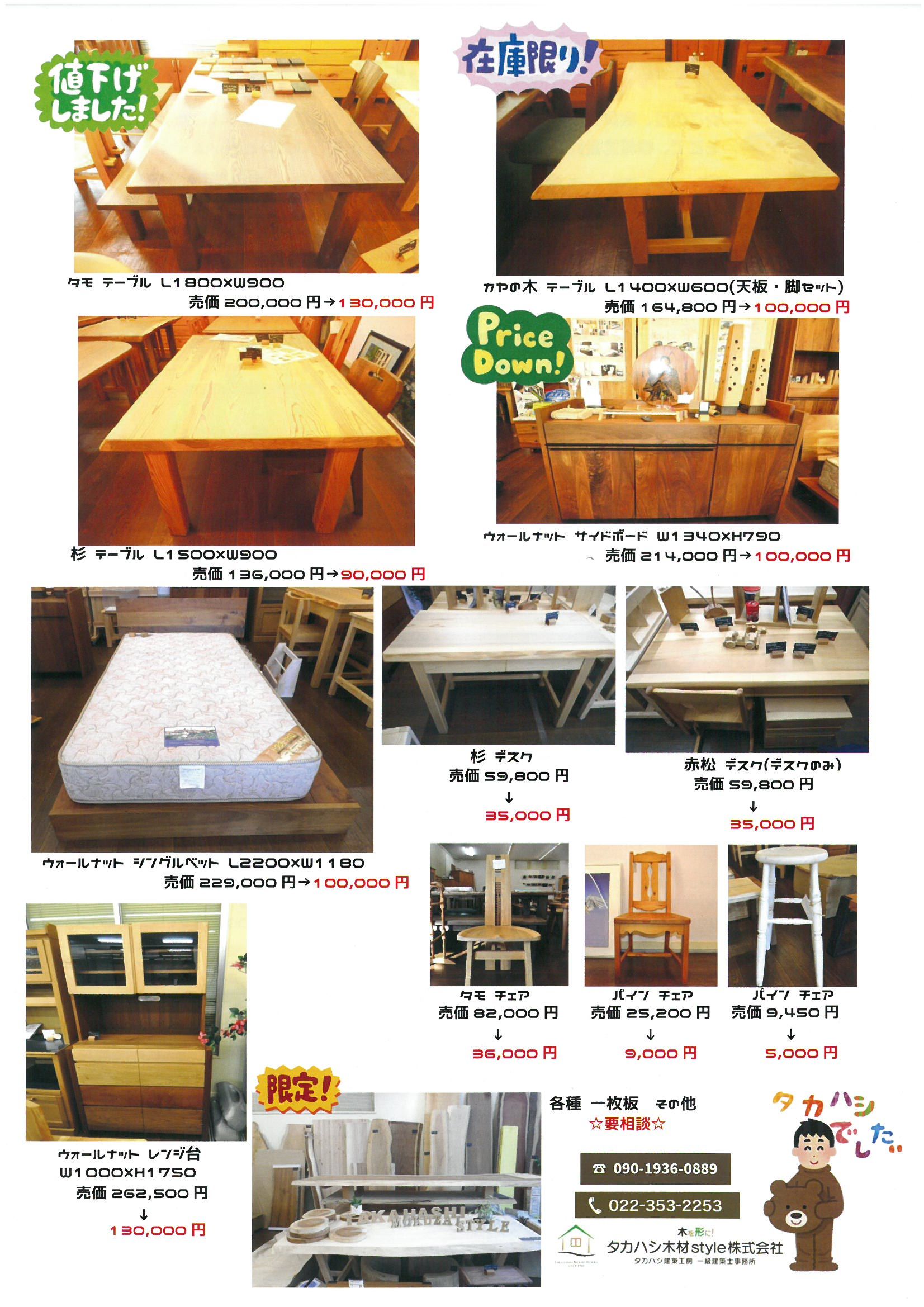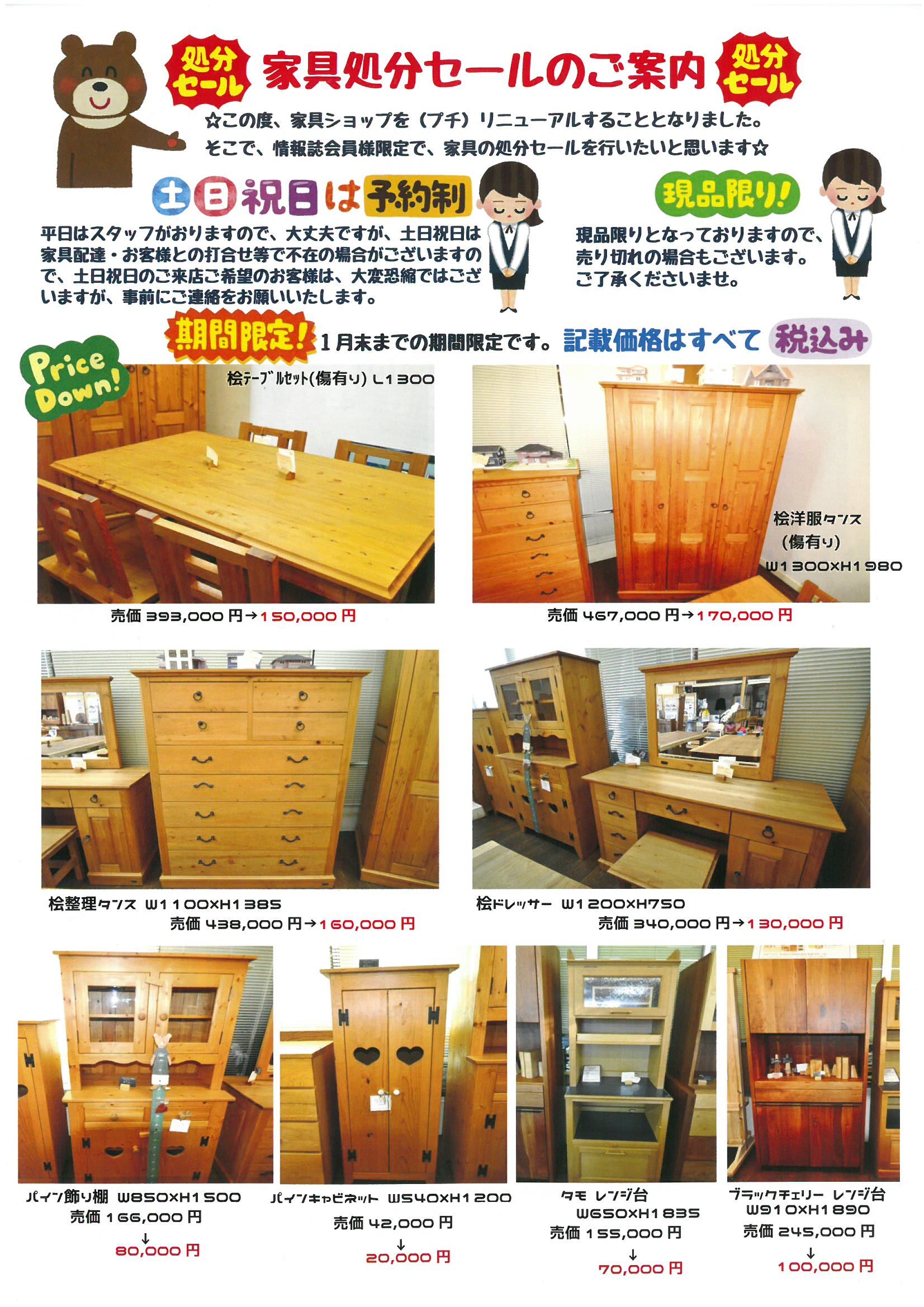 2016年12月版 木(無垢)の家具処分セールのご案内です。