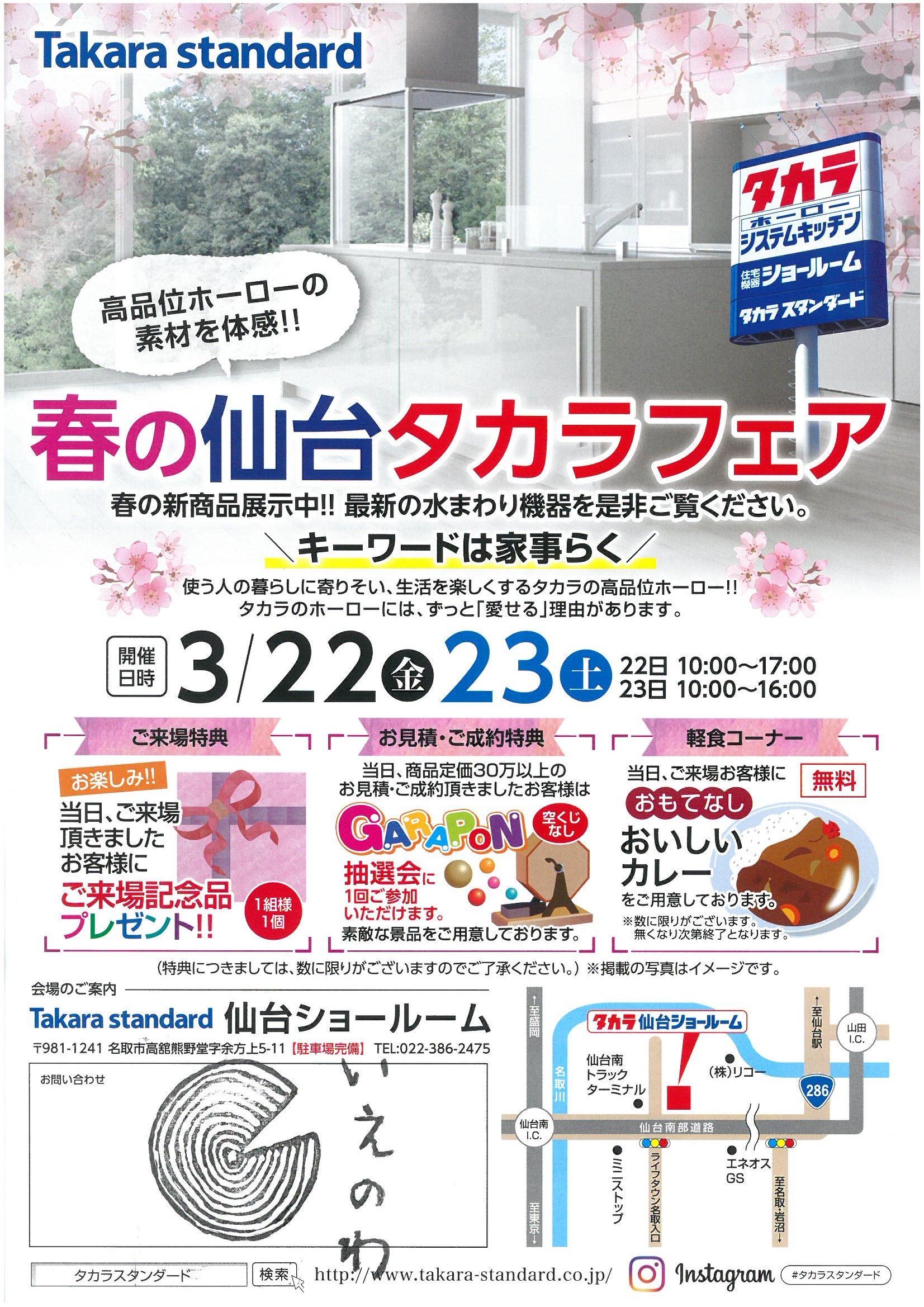 さて本日は、春の仙台タカラフェアのご案内です。