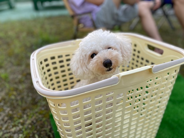 火が危ないのでバスッケットの中で我慢しました (´;ω;`)ウッ…