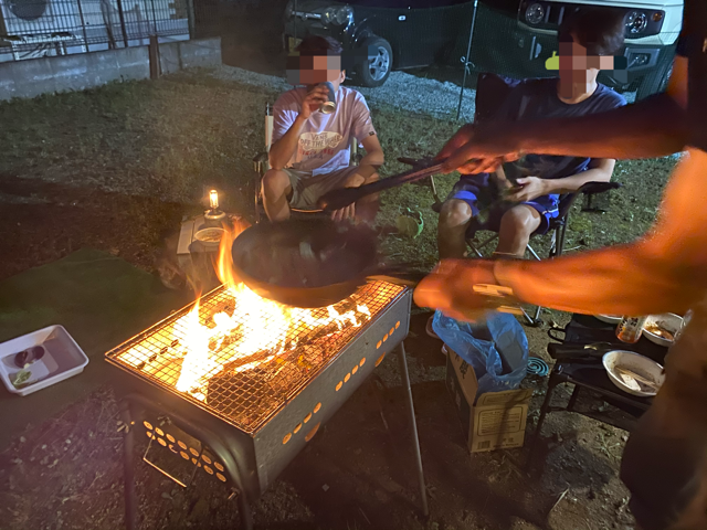 ダメにしてもいいようなフライパンで焼きそば作っちょります