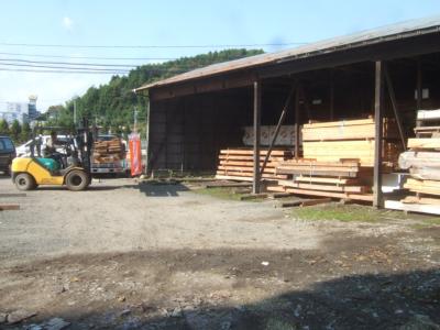 予め人工乾燥と天然乾燥を行なった杉の化粧梁を倉庫の中から、一度全て取り出します。
